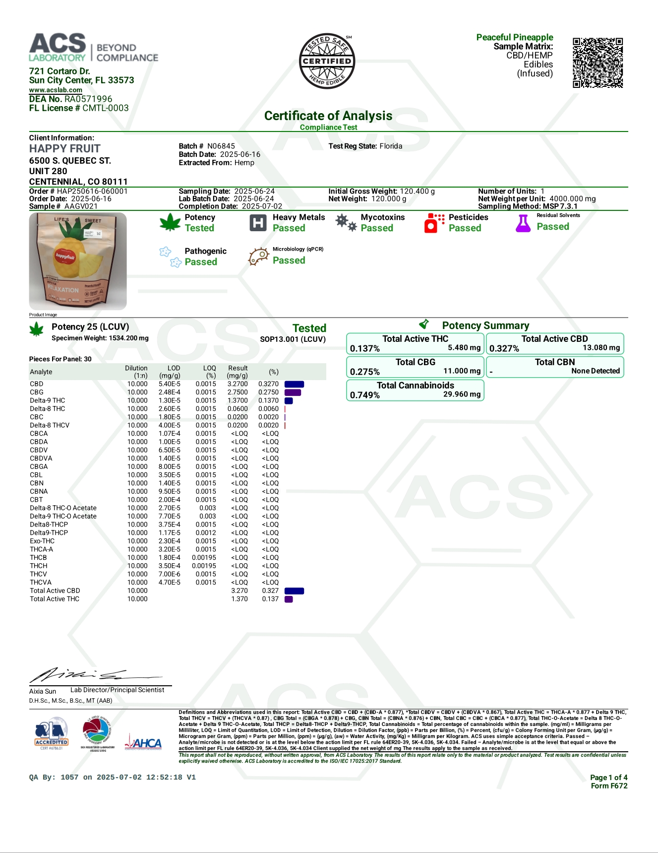 Peaceful Pineapple – 5MG THC + 10MG CBD + 10MG CBG – RELAXATION